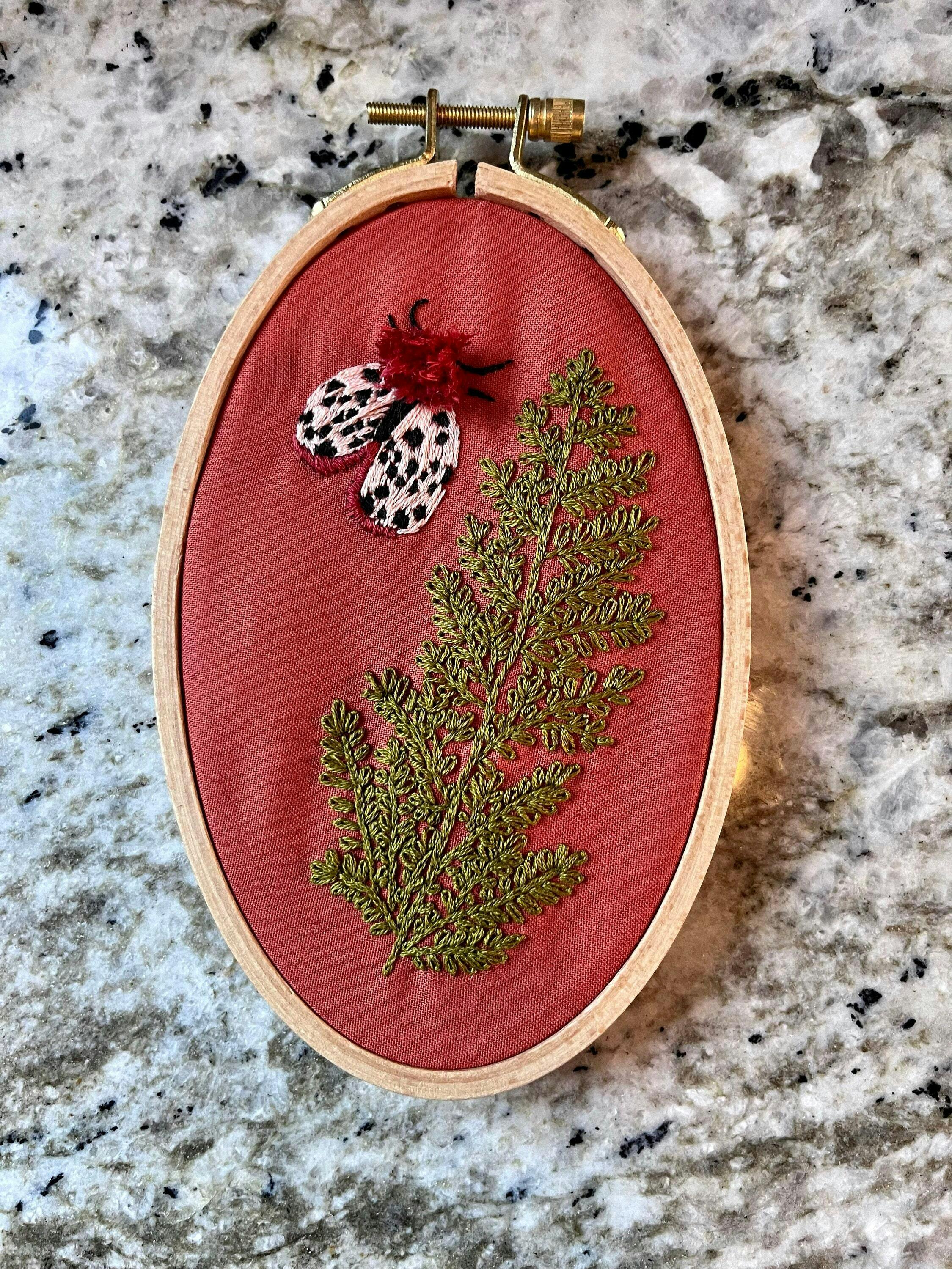 Moth and Fern. Intermediate Hand Embroidery Craft Kit. 3D Stitching. Butterfly Lepidoptery. Craft Gift for Beginners. Nature Pattern