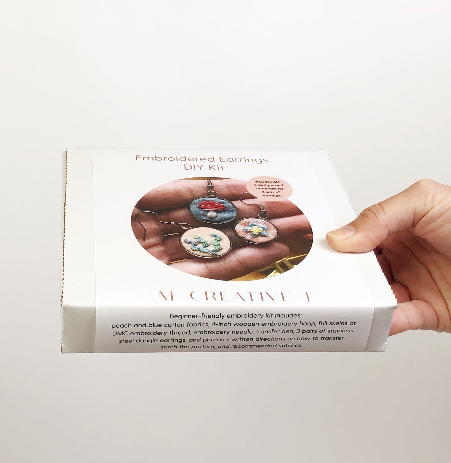 • Start your hand embroidery journey with this comprehensive embroidered earrings embroidery kit for beginners.