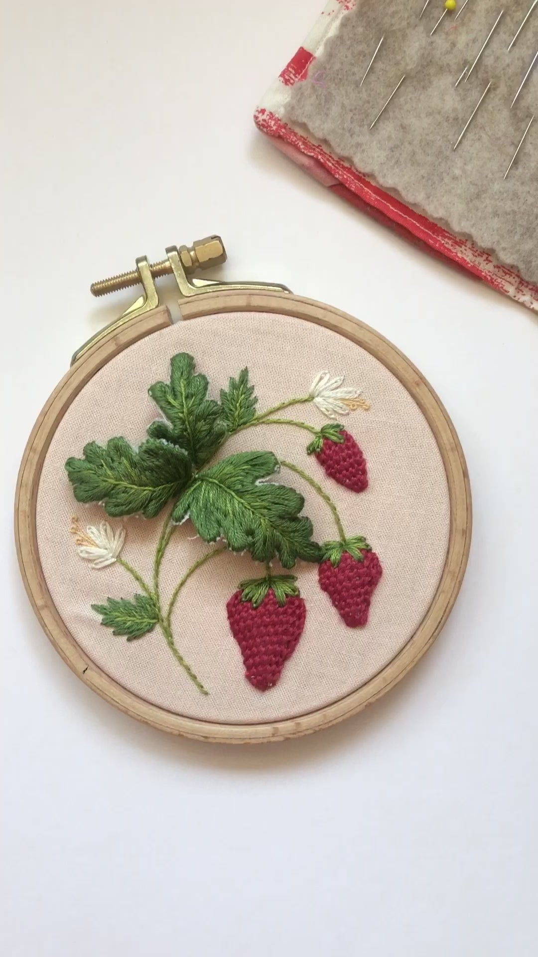 Create a textural embroidery that pops off the fabric! These delightfully ripe strawberries and moveable leaves are a playful way to learn stumpwork.